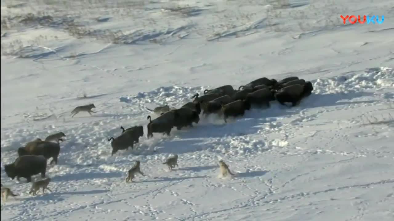 狼群猎捕一头野牛, 激战之际, 发生了不可思议的一幕