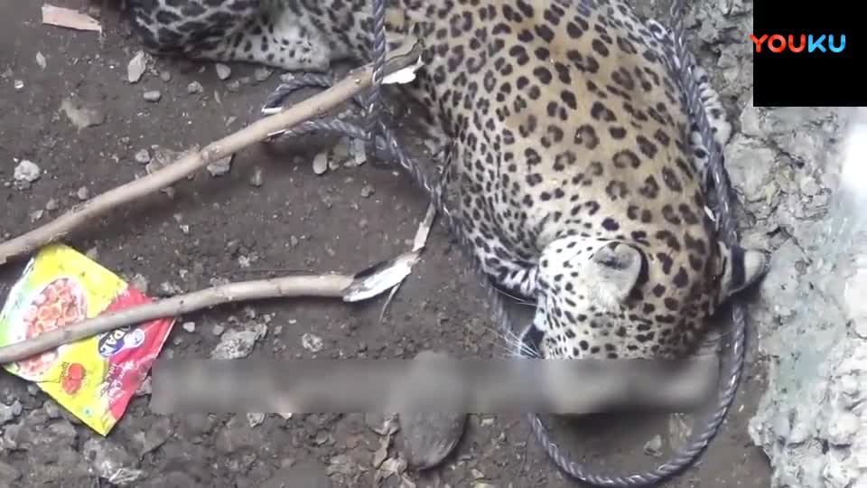 一只花豹掉进了陷阱里, 看人是怎样把它抓上来