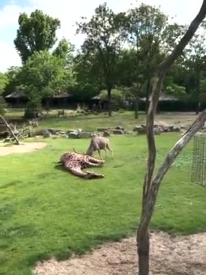 实拍羚羊与长颈鹿打架,羚羊真厉害