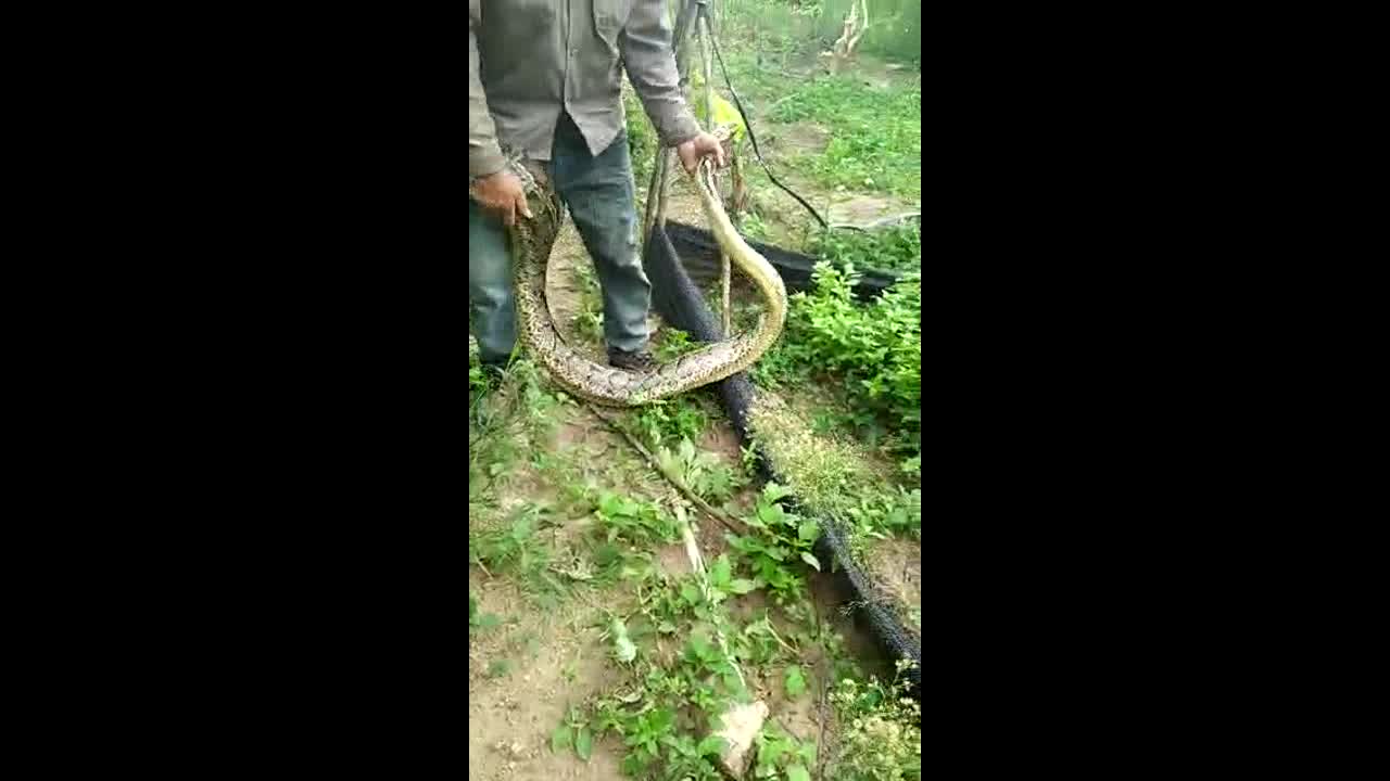 实拍在野外发现一条大蟒蛇,然后活捉它
