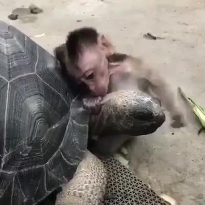 小猴子与乌龟是好朋友,小猴子把乌龟当妈,真是开心