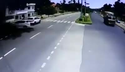 不遵守交通规则,结果被撞飞了
