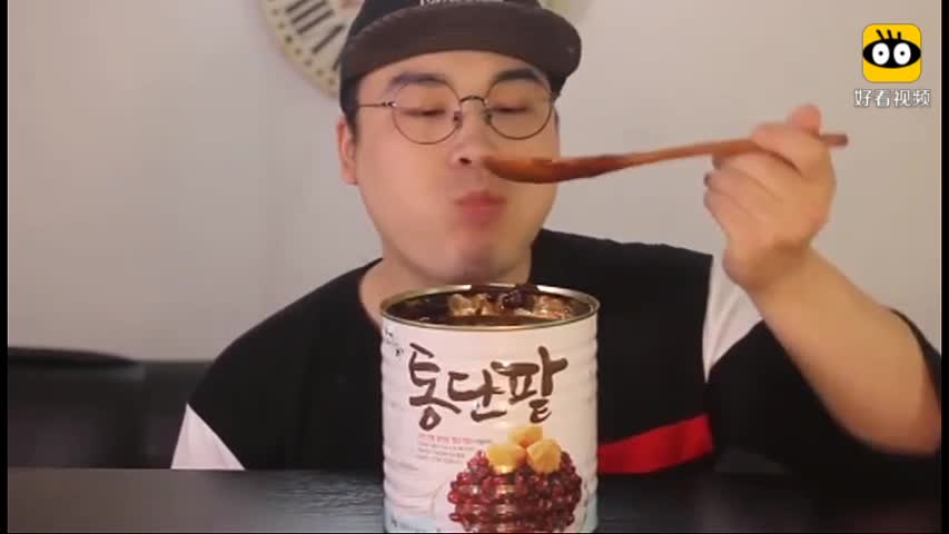 韩国大胃王小哥吃红豆罐头嫌勺子太慢,索性捧着吃