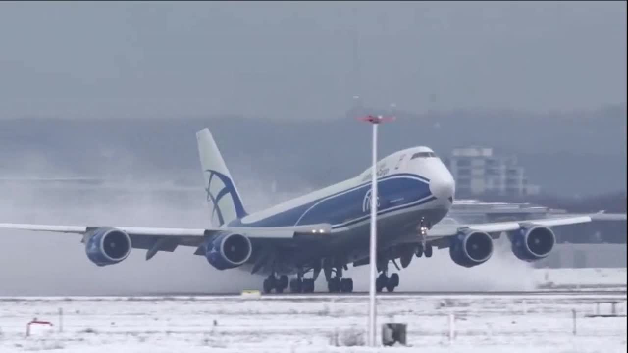 感受大型波音客机运输机吹雪起飞