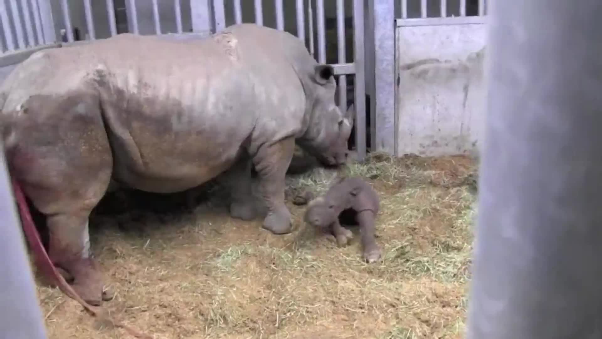 白犀牛生宝宝, 小白犀牛一生下不多久,就会起身走路