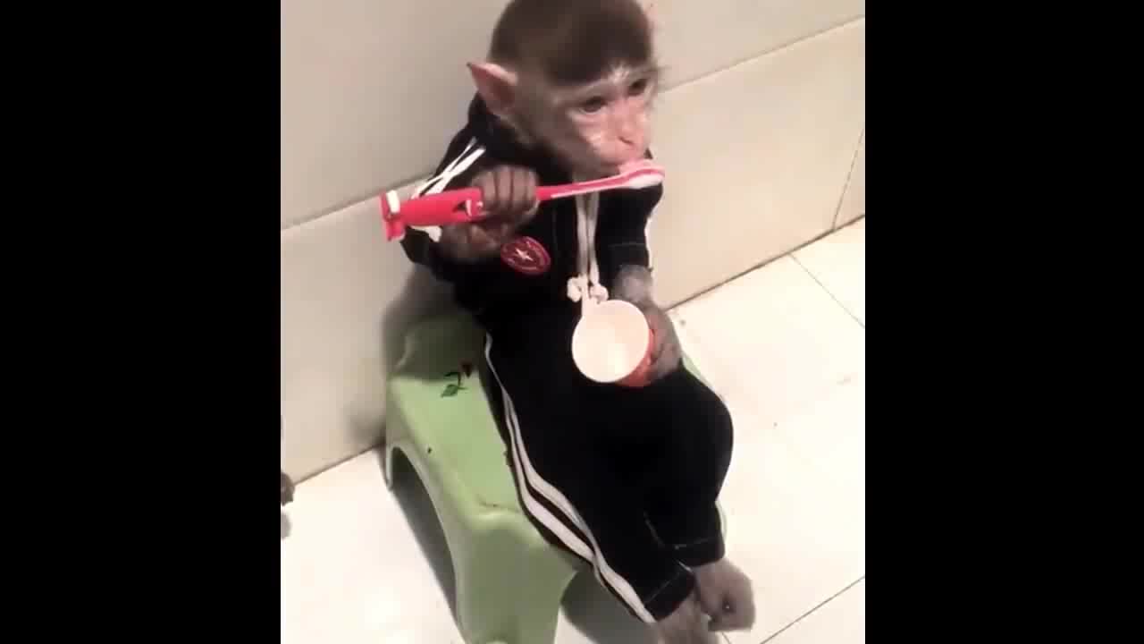 猴子简直和五岁小学生一样,自己刷牙洗脸去上学!