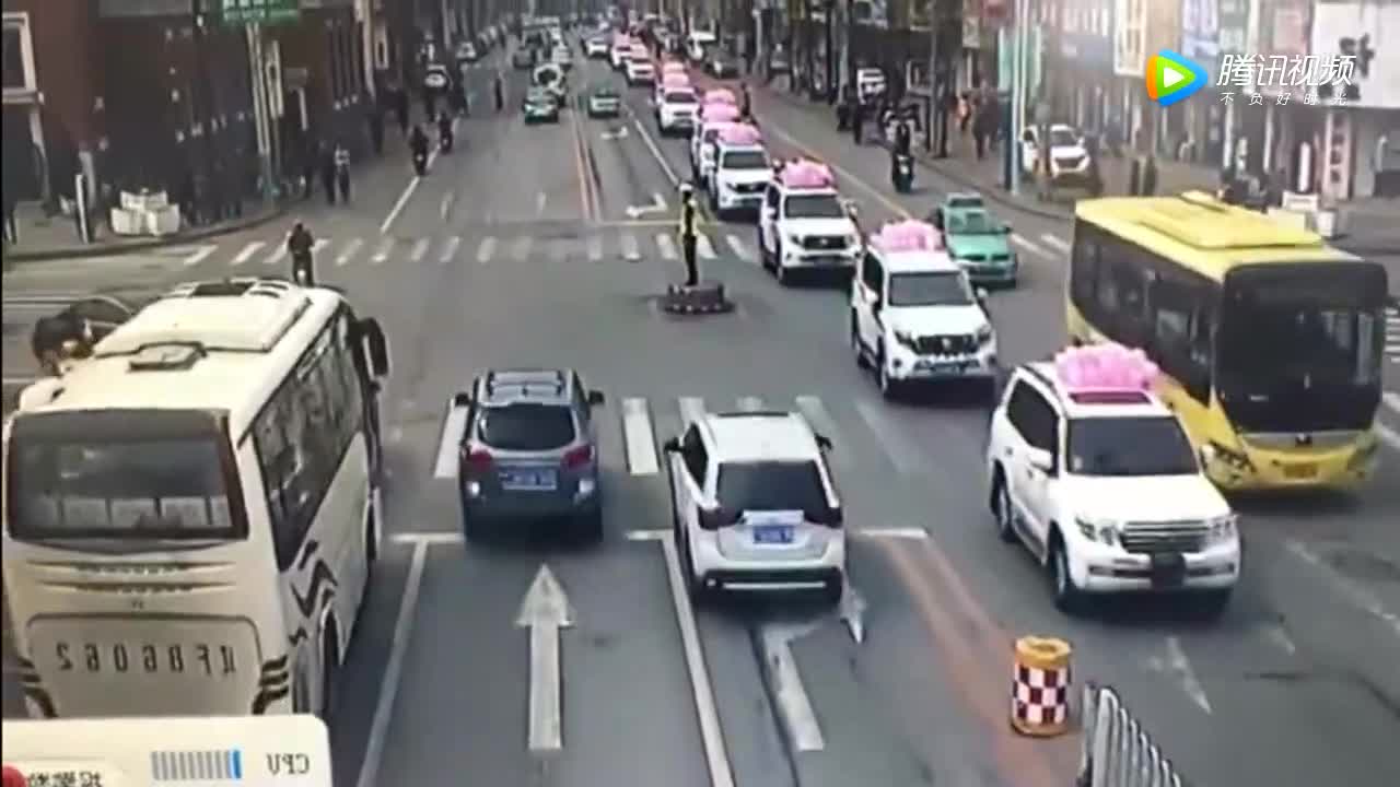 交警正在指挥,不料却被瞬间撞飞,女司机的杀伤力太强