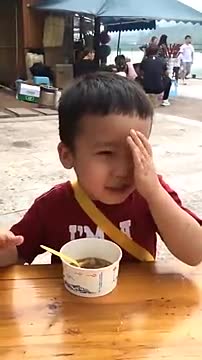 儿子吃了超辣的凉面!真是个表情帝!