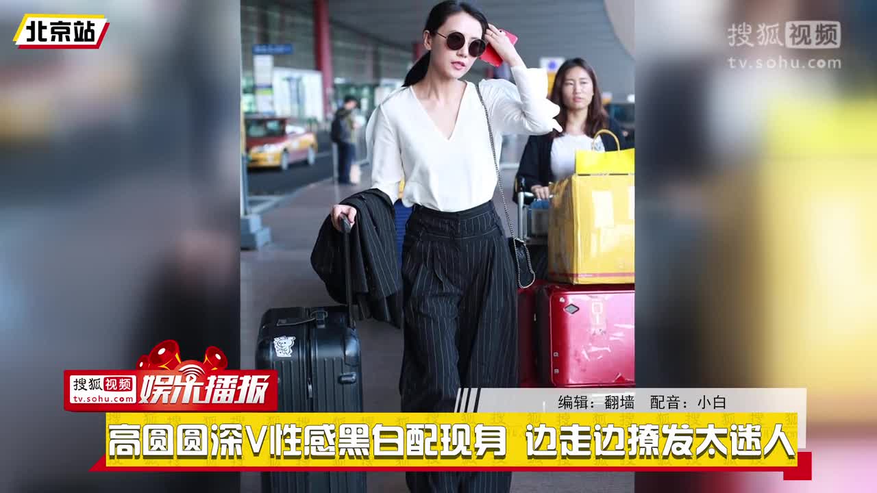高圆圆深V性感黑白配现身 边走边撩发太迷人