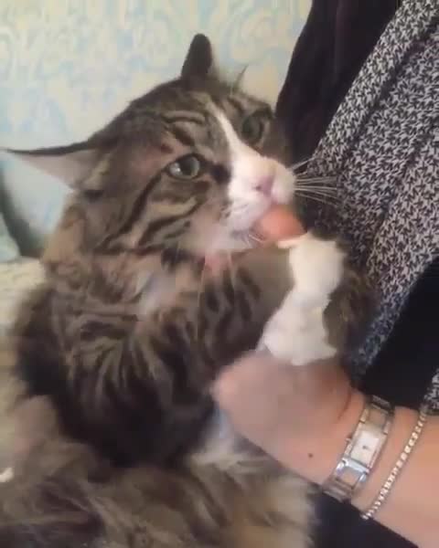 喵星人抱着主人的手不肯放了
