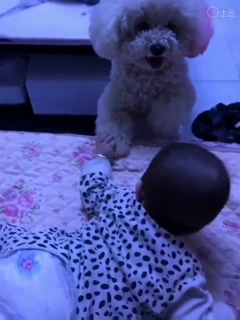 小主人在床上爬来爬去,狗狗接下的举动太暖了