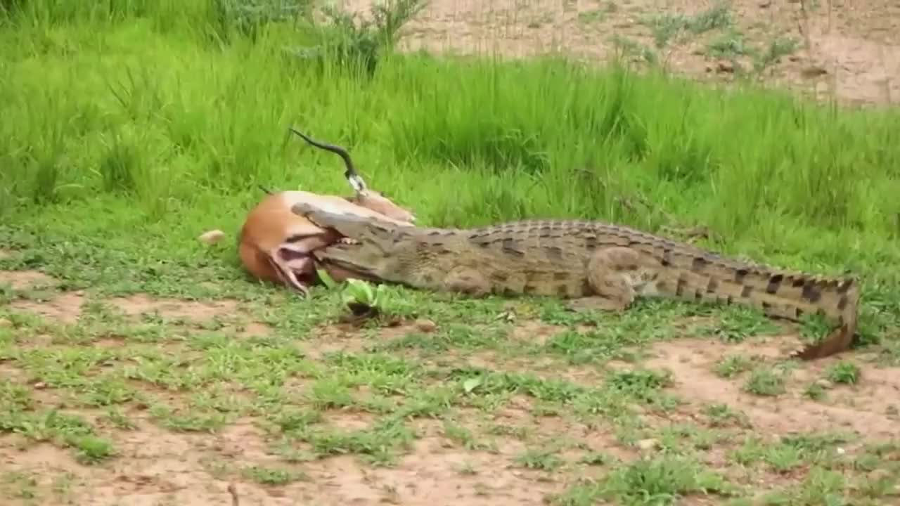 鳄鱼死死咬住黑斑羚,正当鳄鱼洋洋得意时,灾难瞬间降临!