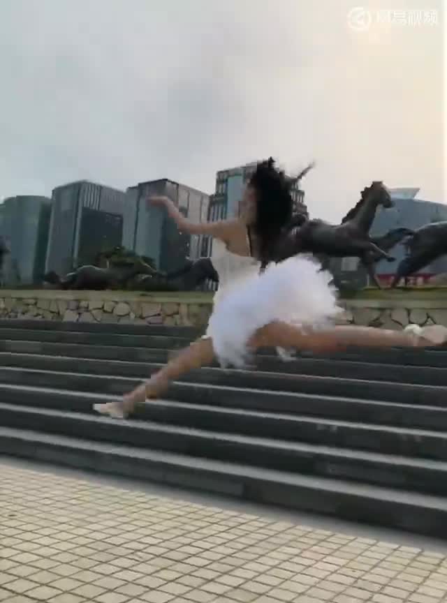 美女穿短裙展示凌空一字马,腿得多直才能做到这样?