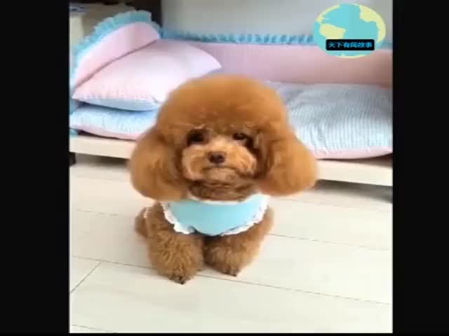 泰迪小矮个上不了大床,委屈的回自己的小床!
