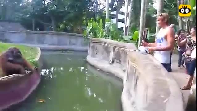 一游客给了猩猩好吃的,猩猩马上回了一份大礼,不喜欢占
