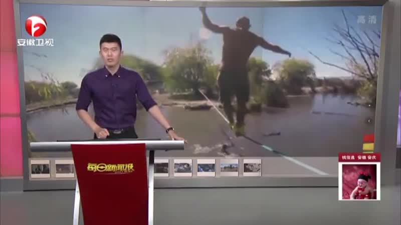 鳄鱼池上走扁带 看得让人捏把汗