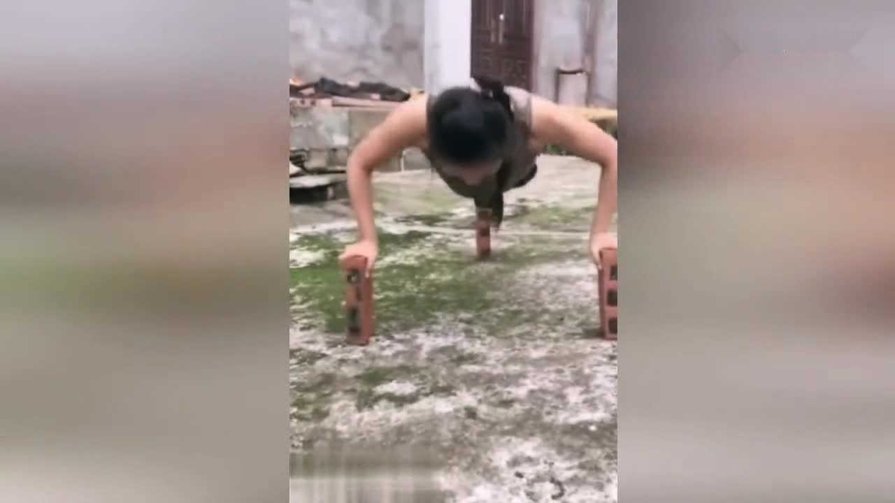 史上最逗比的女孩,用砖头做俯卧撑!